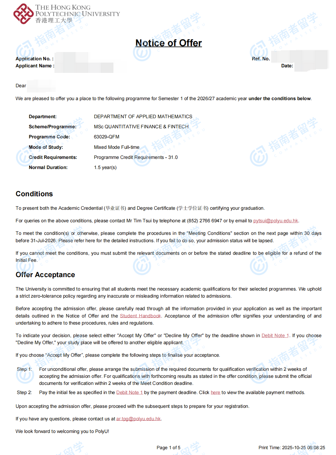 香港理工大学量化金融与金融科技理学硕士研究生offer一枚