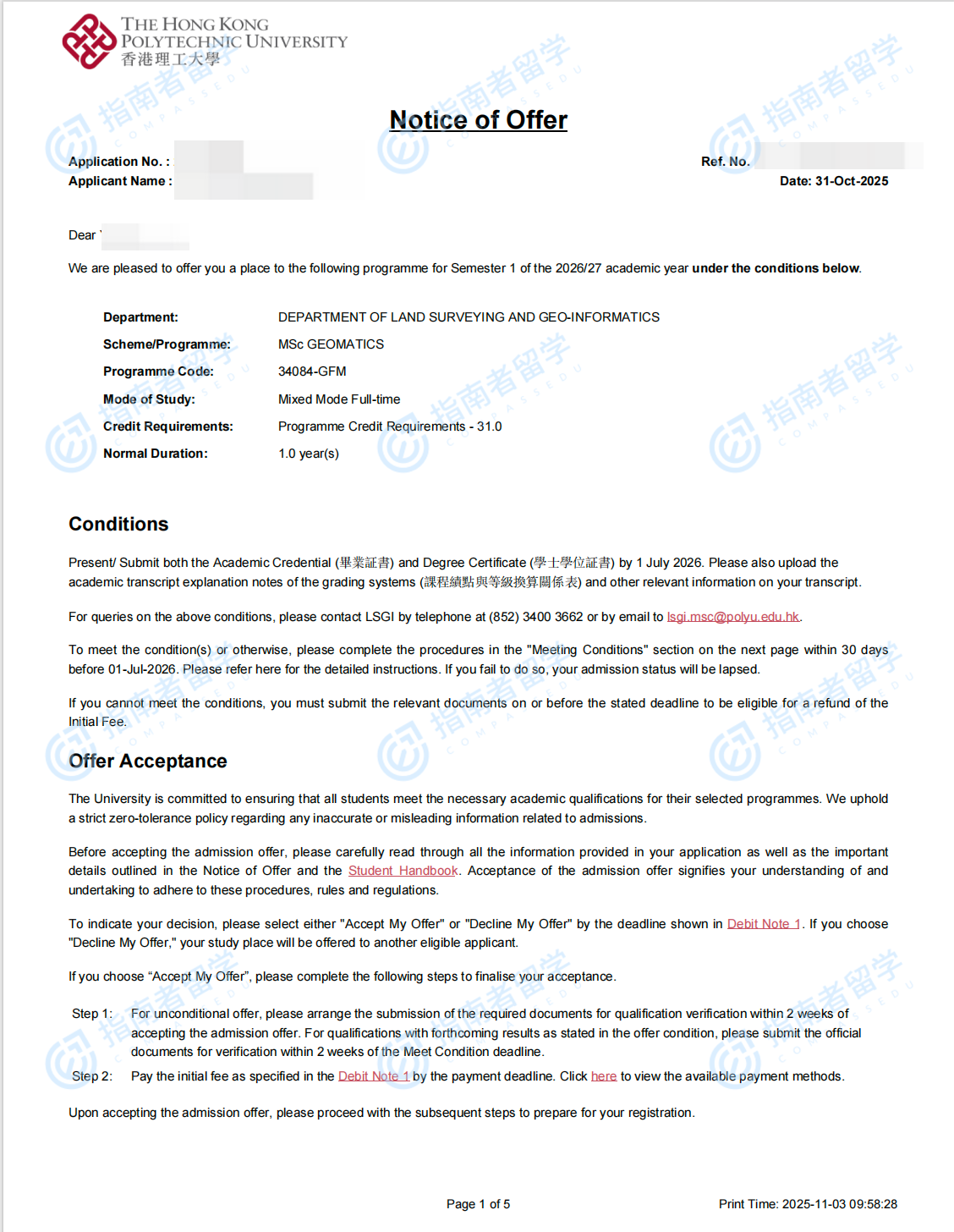 香港理工大学测绘及地理资讯学理学硕士研究生offer一枚