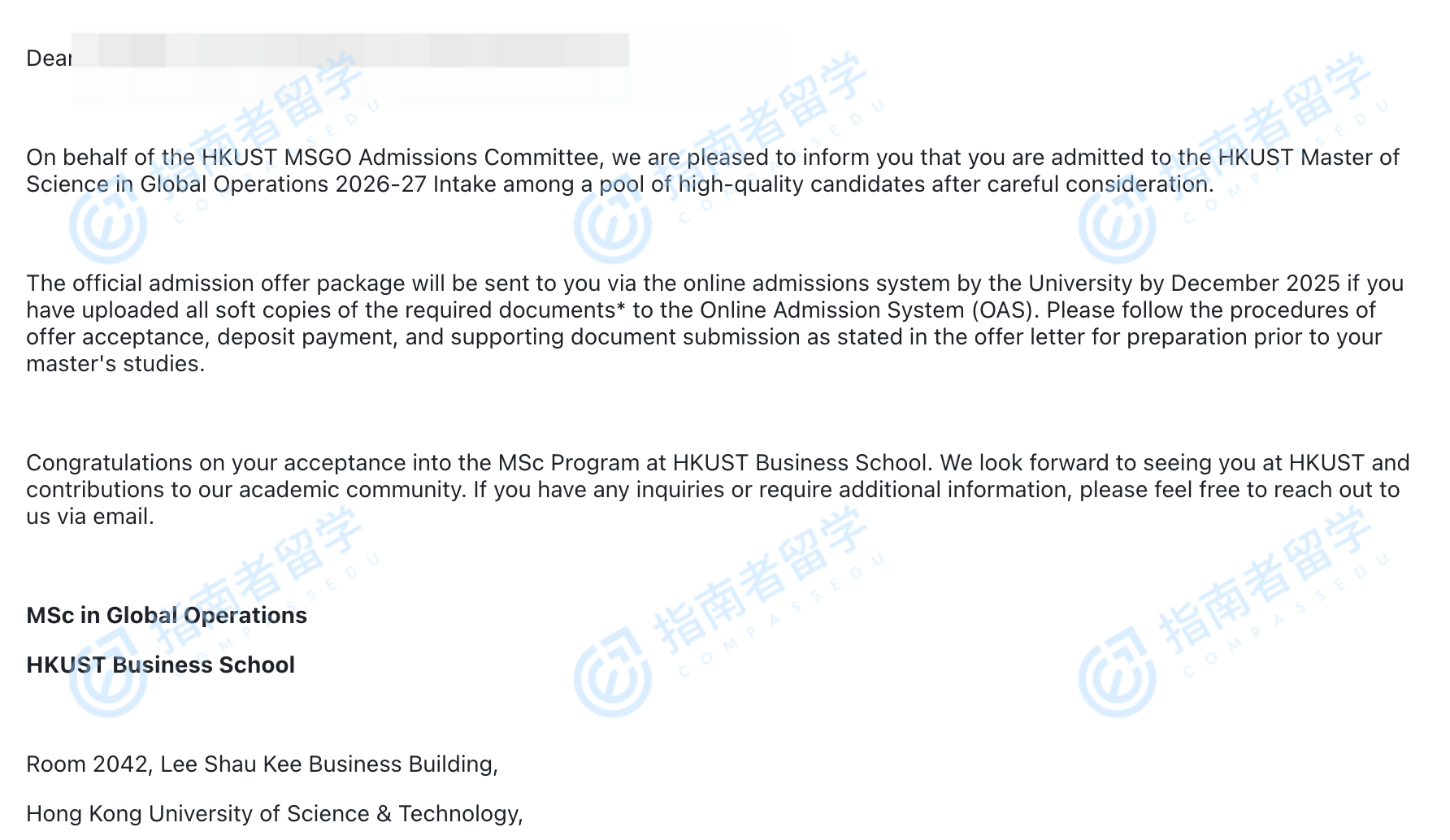 香港科技大学全球运营理学硕士研究生offer一枚
