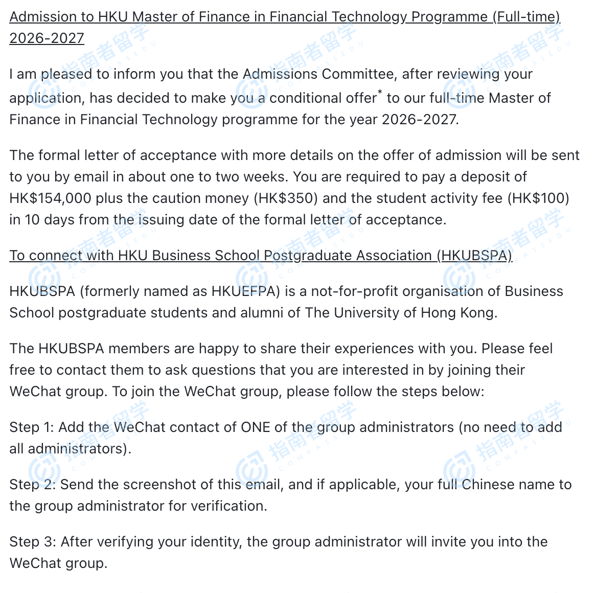 香港大学金融科技金融学硕士研究生offer一枚
