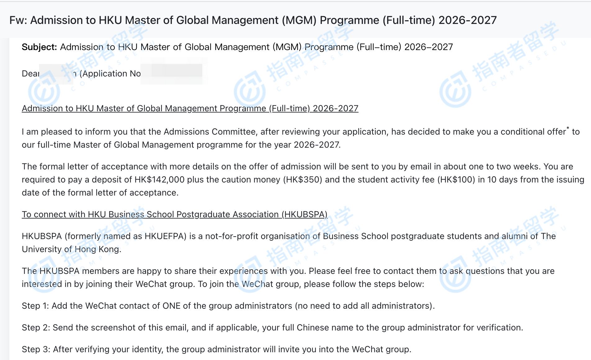 香港大学环球管理学硕士研究生offer一枚