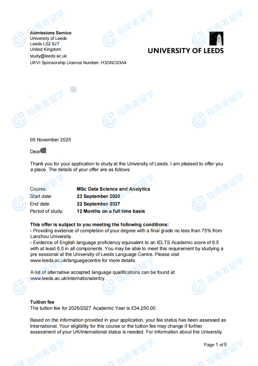利兹大学数据科学与分析理学硕士研究生offer一枚