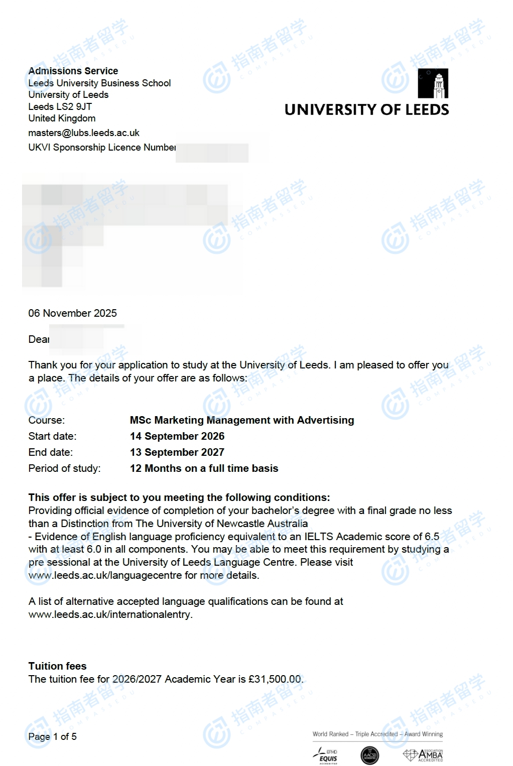 利兹大学营销管理与广告理学硕士研究生offer一枚