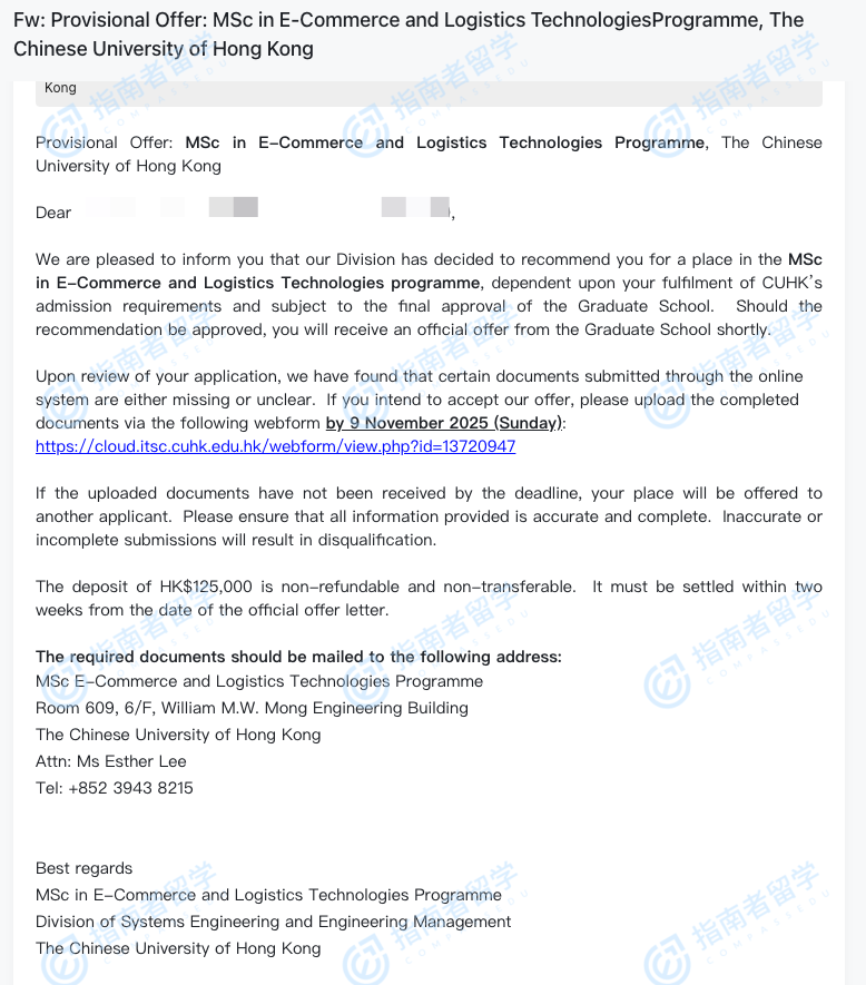 香港中文大学电子商务与物流技术理学硕士研究生offer一枚