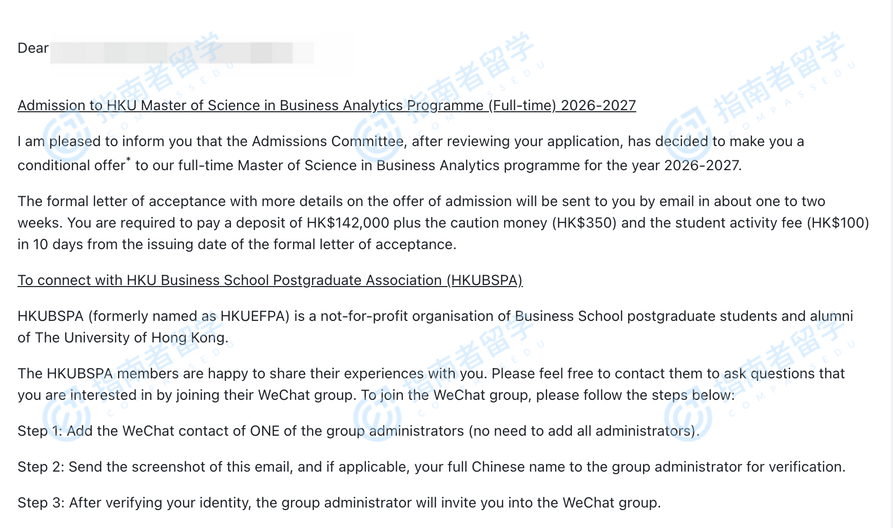 香港大学商业分析理学硕士研究生offer一枚