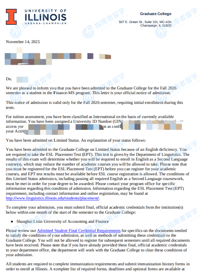 伊利诺伊大学香槟分校金融硕士研究生offer一枚