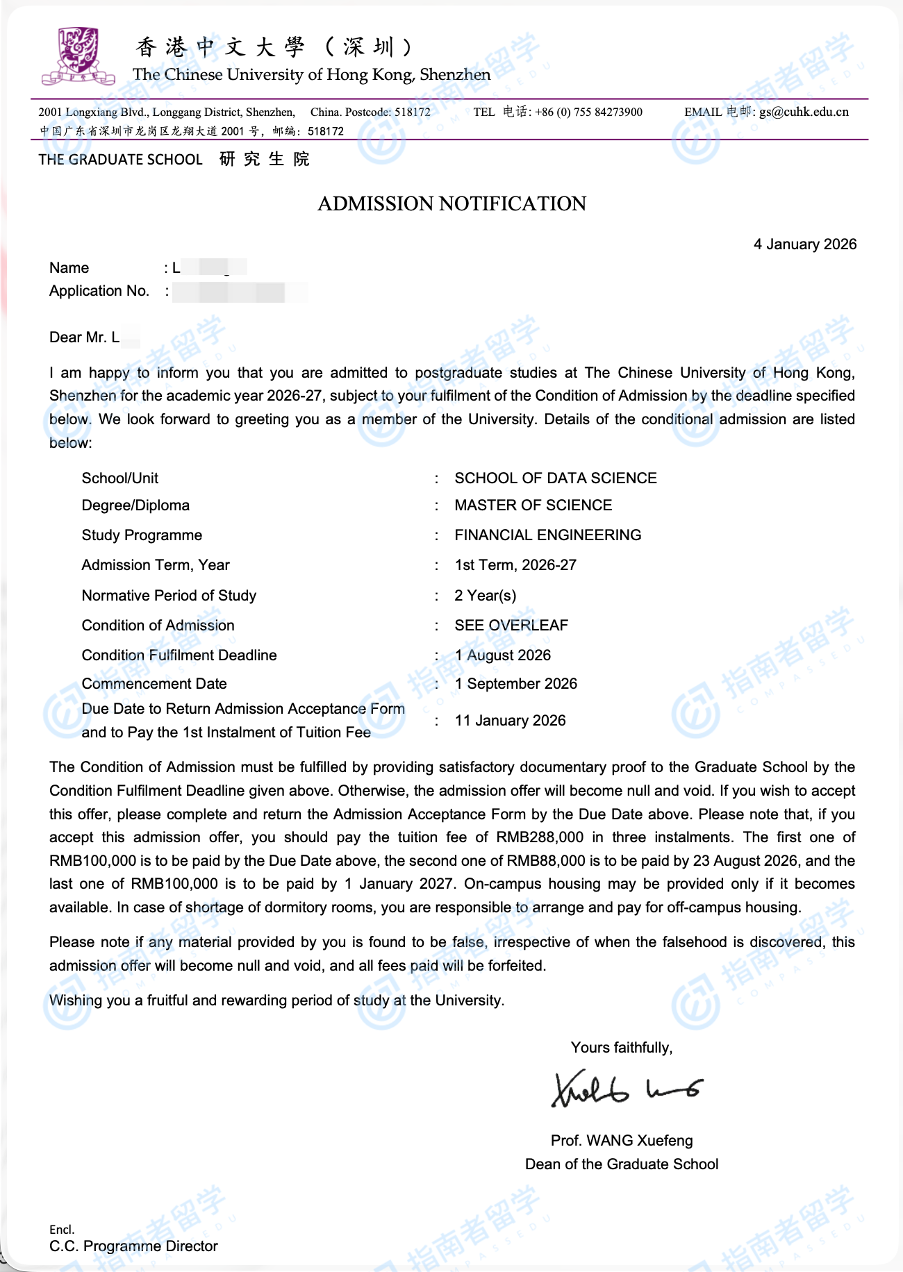 香港中文大学金融工程理学硕士(CUHK-Shenzhen)研究生offer一枚