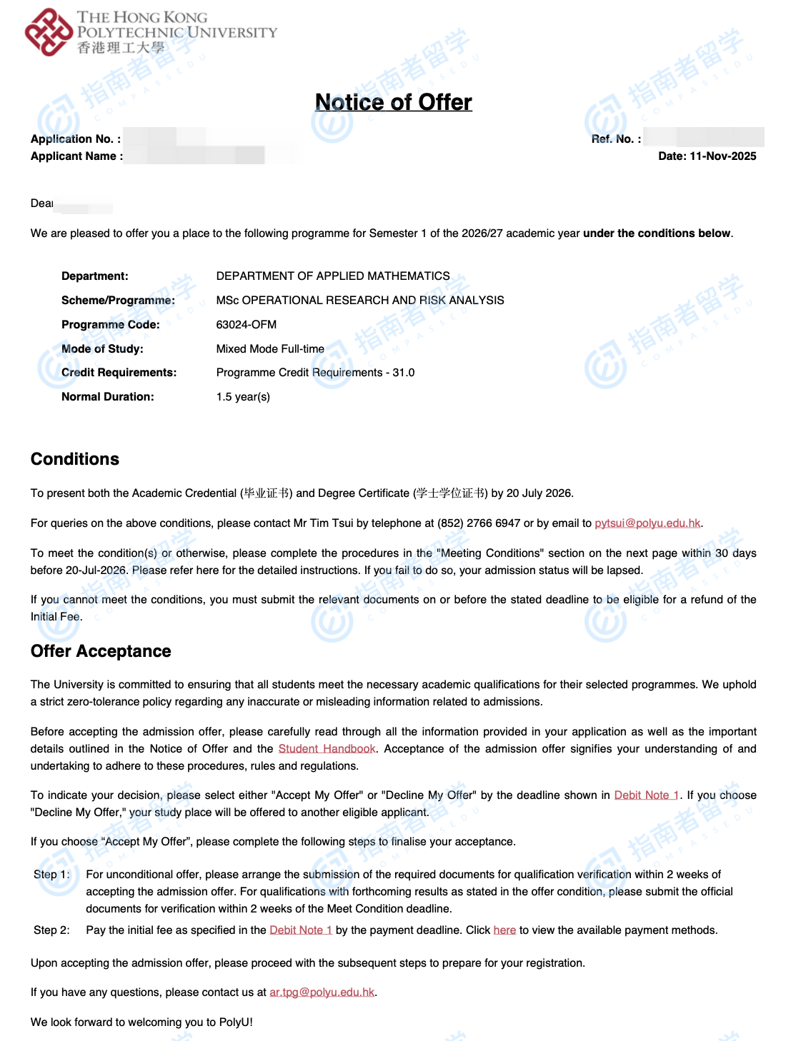 香港理工大学运筹及风险分析理学硕士研究生offer一枚