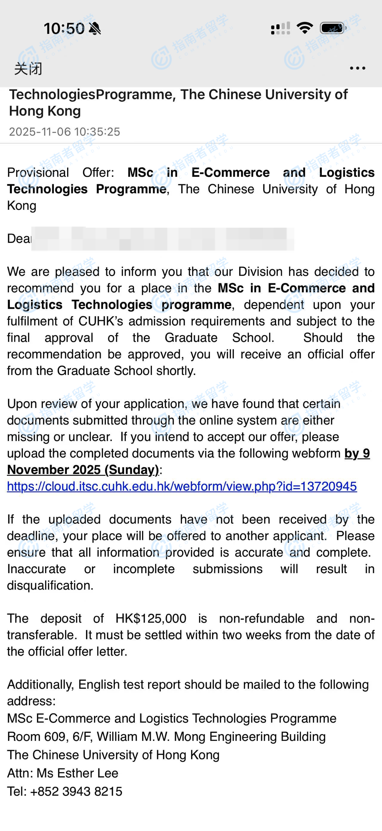 香港中文大学电子商务与物流技术理学硕士研究生offer一枚