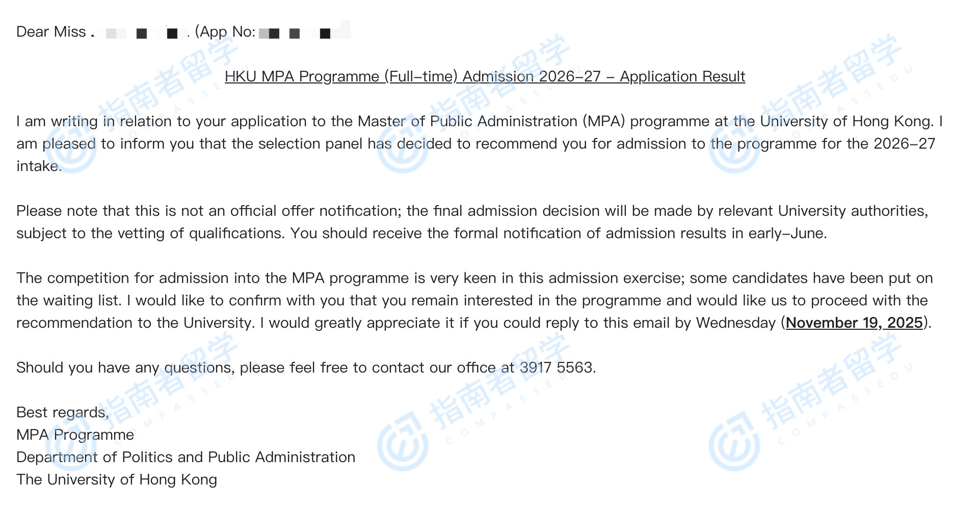香港大学公共管理硕士研究生offer一枚