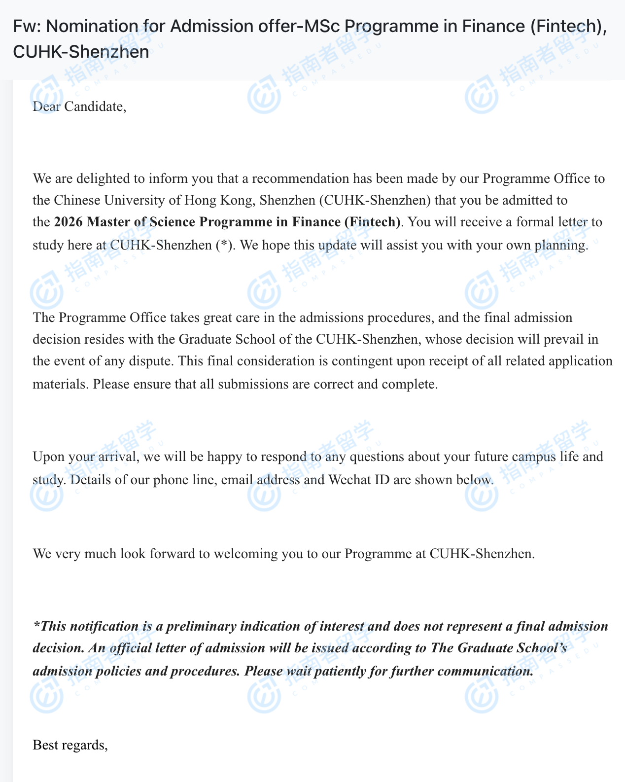 <p>香港中文大学(深圳)金融学硕士项目旨在培养具有深厚理论培训和实践能力的卓越的高技能专业人员。课程由世界一流的、受过国际培训的教师和非常成功的高级金融从业人员共同教授。香港中文大学(深圳)金融学硕士项目课程提供两个专业,即金融科技和金融管理,使学生能够发展金融业的专业技能。</p>