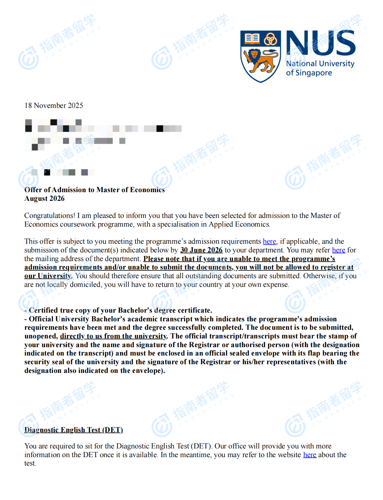 - 具有新加坡国立大学荣誉学位(优异/二等及以上)或同等学历(例如,4年制学士学位且平均成绩至少达到B或同等水平),需要该学科或相关领域背景;或<br> - 具有良好的学士学位(平均成绩至少达到B或同等水平),需要该学科或相关领域背景,并成功完成分班考试;或<br> - 特殊情况下接受研究生院认可的其他资格和经验。<br> 需要提供存款证明70,000新币<br> 应用经济学方向提供1月、8月入学,数量经济学方向仅提供8月入学