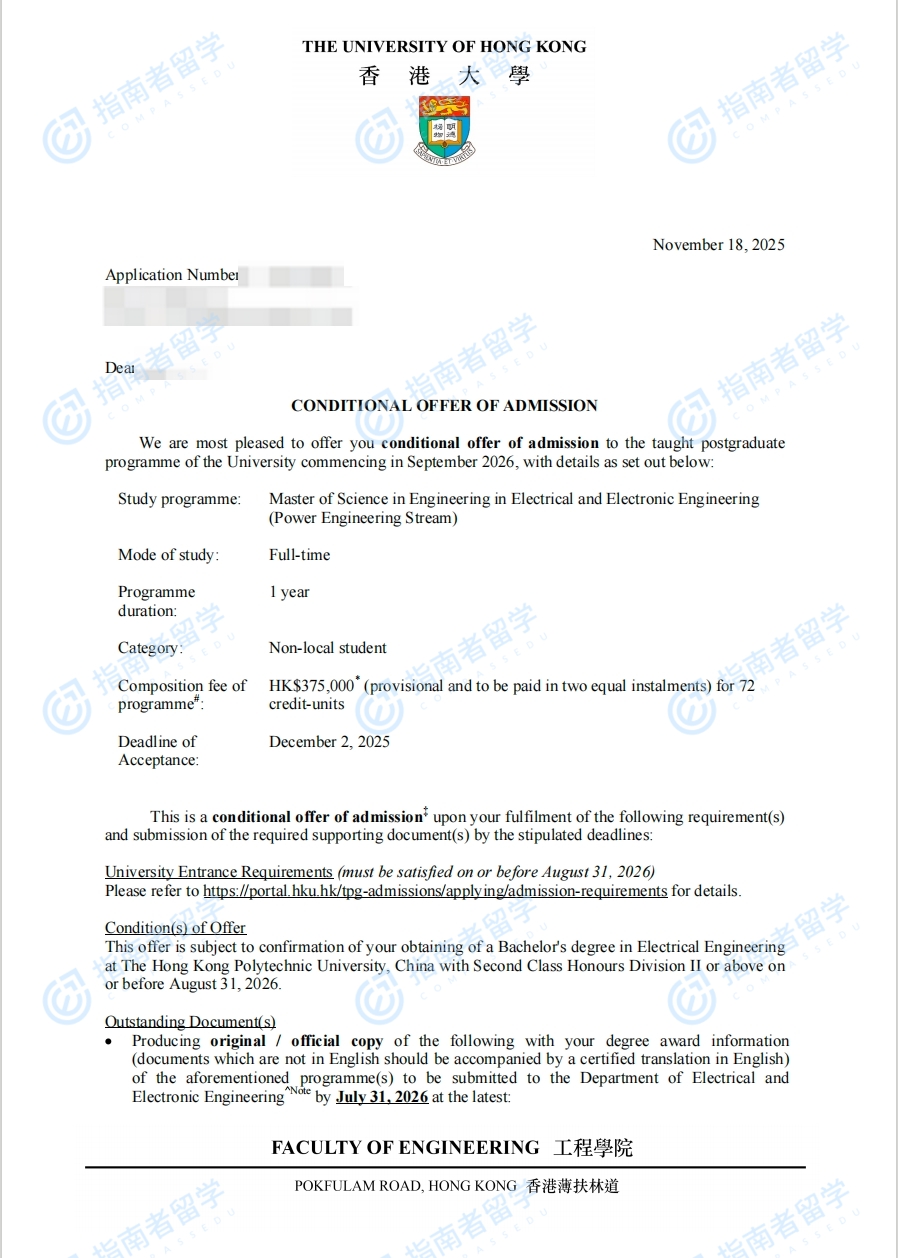 香港大学电气与电子工程(工程)理学硕士 - 电力工程方向研究生offer一枚