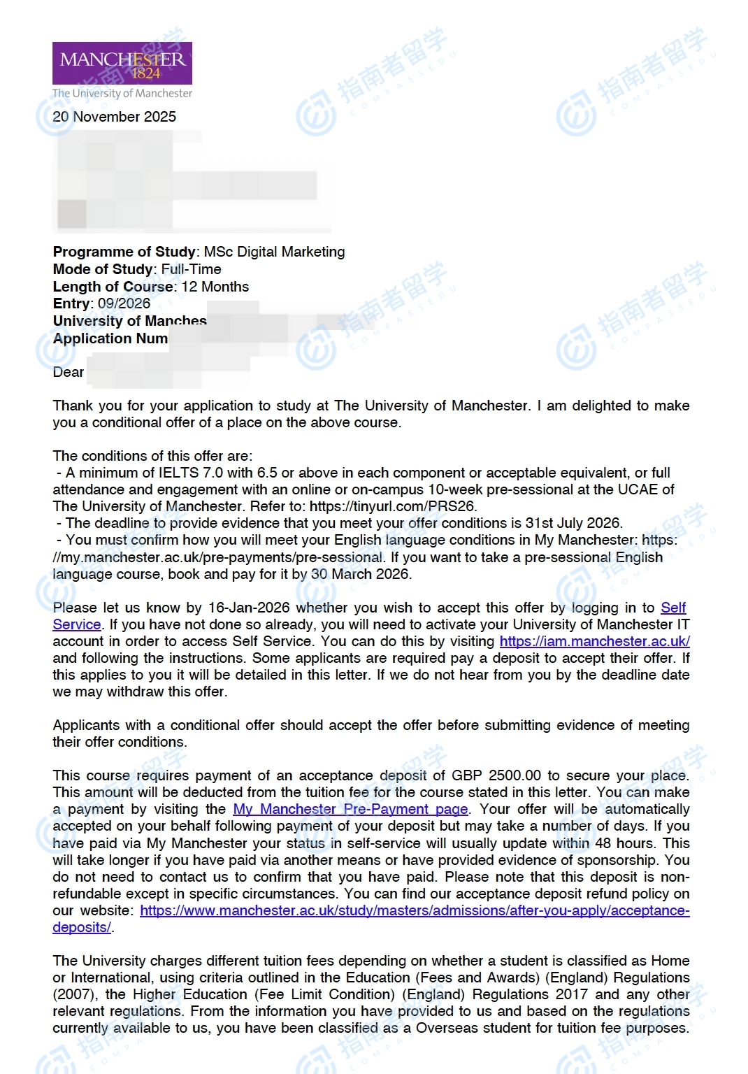 曼彻斯特大学数字营销理学硕士研究生offer一枚