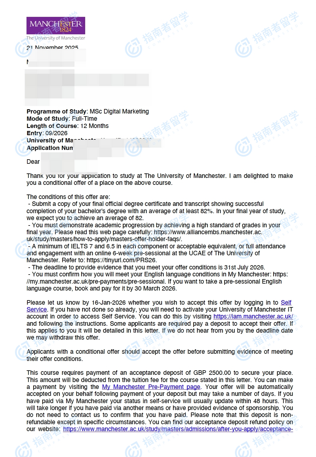 曼彻斯特大学数字营销理学硕士研究生offer一枚