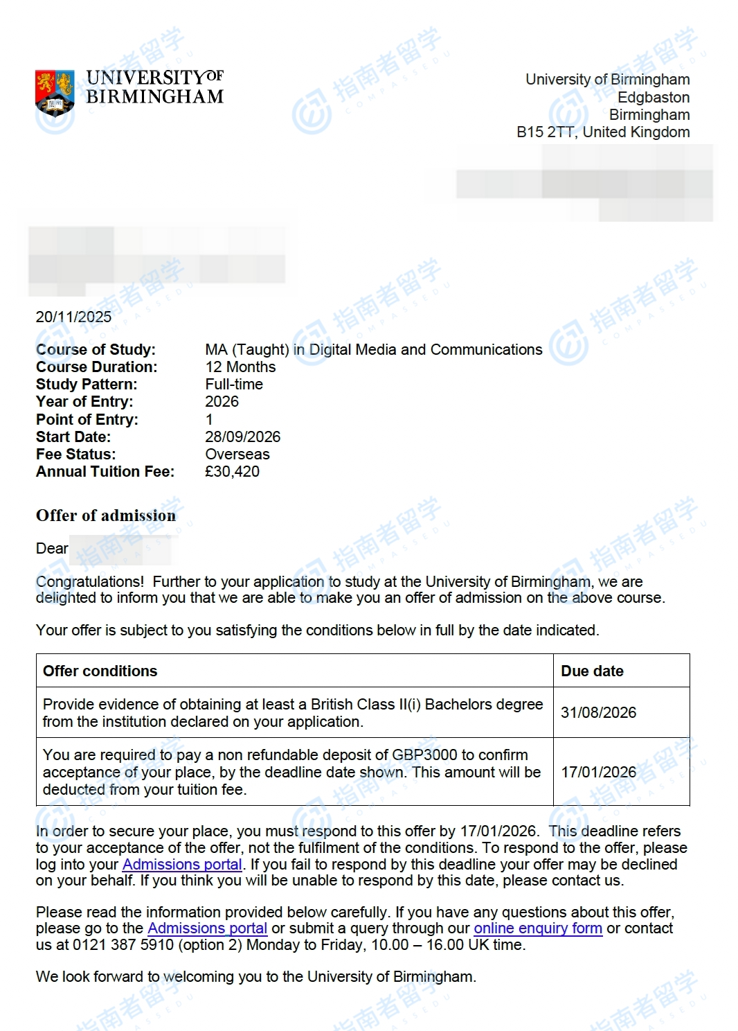 <p>伯明翰大学数字媒体与传播文学硕士课程将为学生提供在数字媒体行业取得成功的知识和技能,学生将了解数字媒体的最新趋势,包括社交媒体、移动技术和人工智能,还将发展沟通和研究技能,这样就可以进入商业和媒体的世界,并对内容创作和数据分析有深刻的理解。</p>
