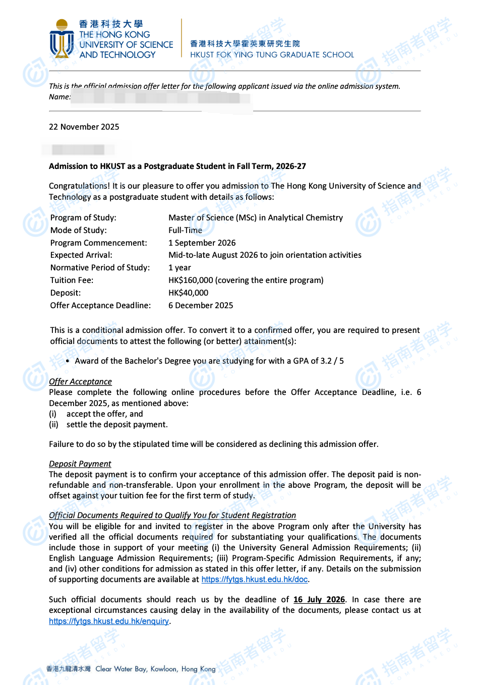 <p> 香港科技大学分析化学理学硕士项目致力于为理学学士毕业生未来在分析实验室就职做好准备;课程内容包括材料科学,法医鉴定,环境样品采集以及食品质量控制;同时涵盖了现代分析技术,实际分析问题和物理学原理。另外,香港科技大学分析化学理学硕士项目注重培养学生的实验动手能力,积累实践经验,因此课程中包含了很多实验室实践课程。 </p>