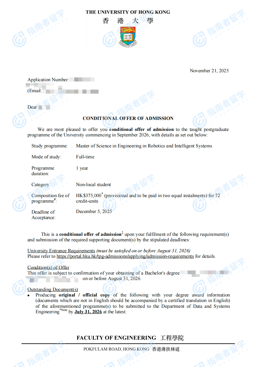 香港大学机器人与智能系统(工程)理学硕士研究生offer一枚