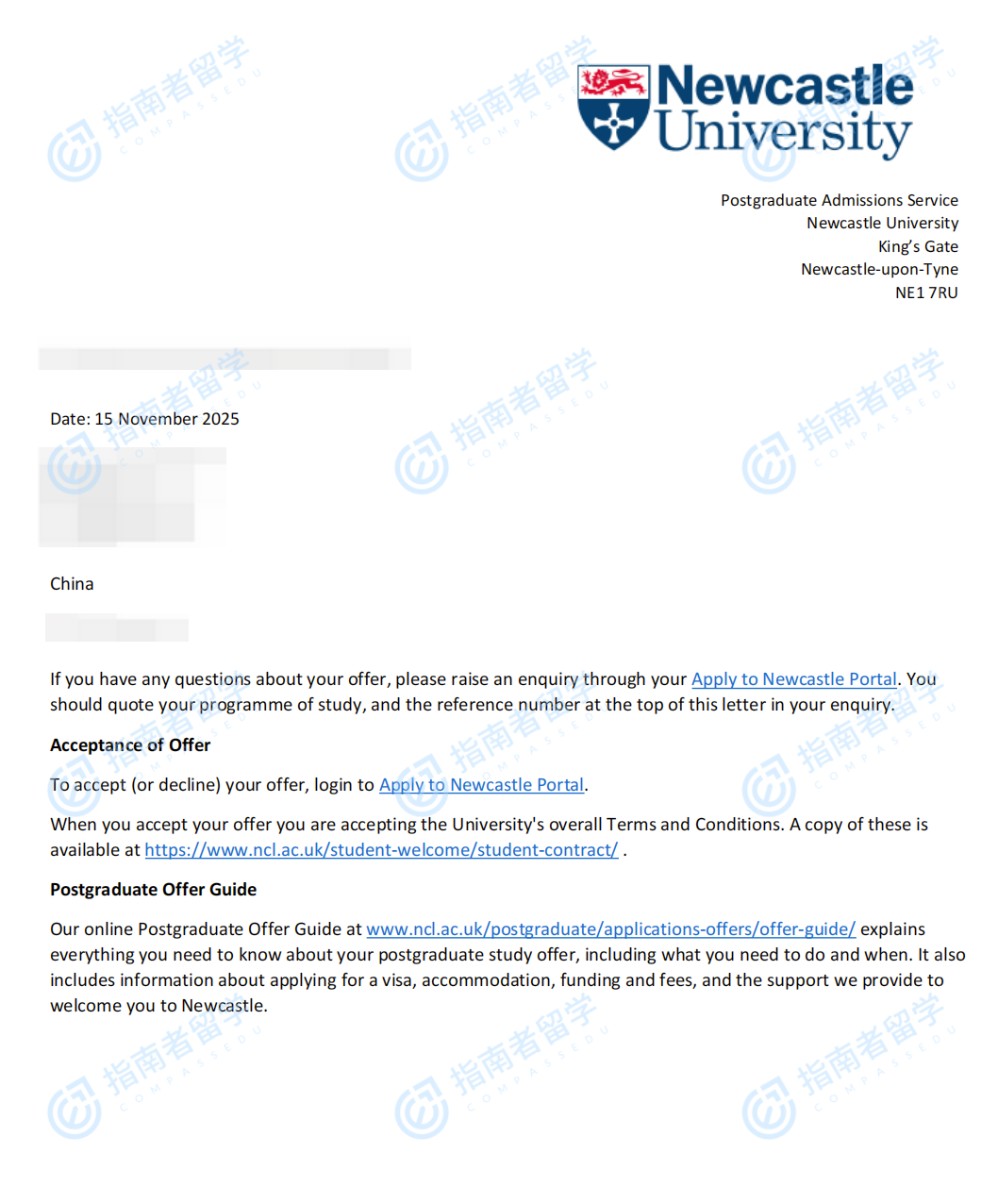 纽卡斯尔大学(英国)微电子学理学硕士(系统与设备)研究生offer一枚