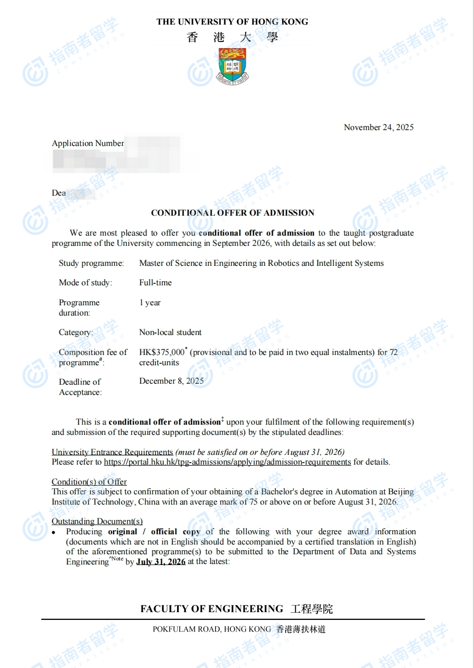 香港大学机器人与智能系统(工程)理学硕士研究生offer一枚