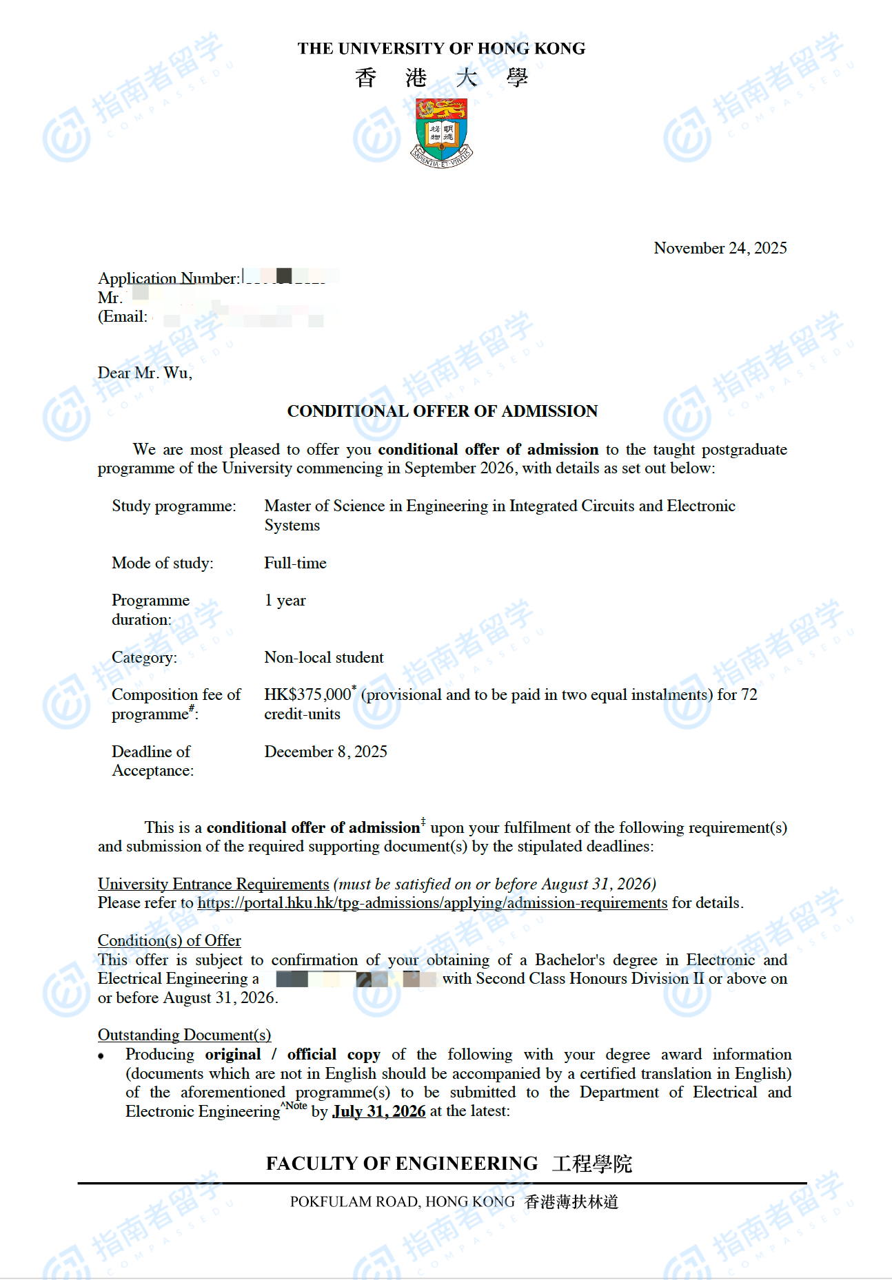 香港大学电子工程方向录取报告