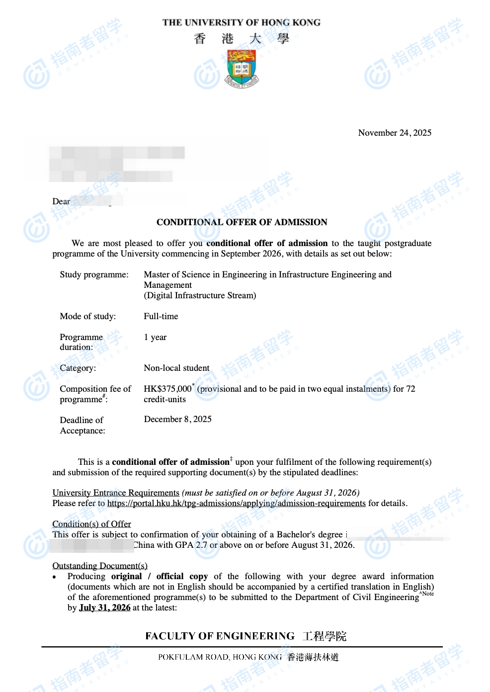 香港大学基础设施工程与管理(工程)理学硕士 - 数字基础设施方向研究生offer一枚