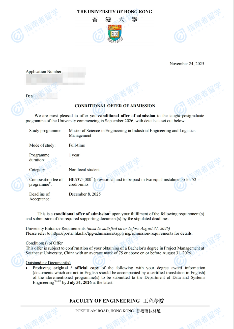 香港大学工业工程与物流管理(工程)理学硕士研究生offer一枚
