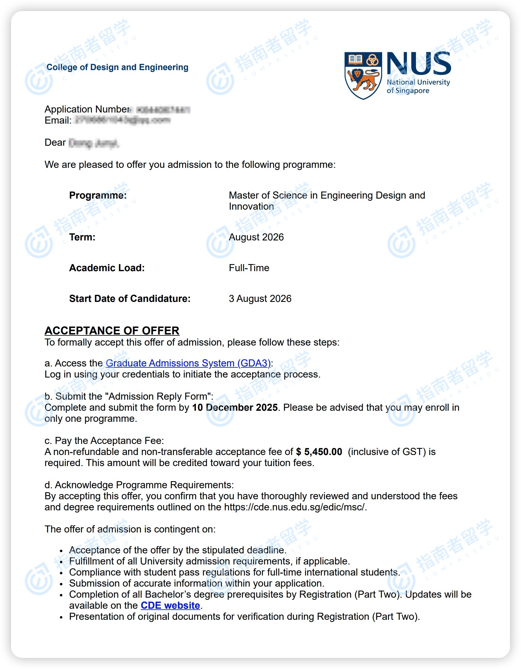 新加坡国立大学工程设计与创新理学硕士研究生offer一枚