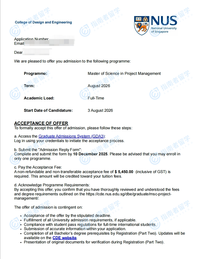 新加坡国立大学项目管理理学硕士研究生offer一枚