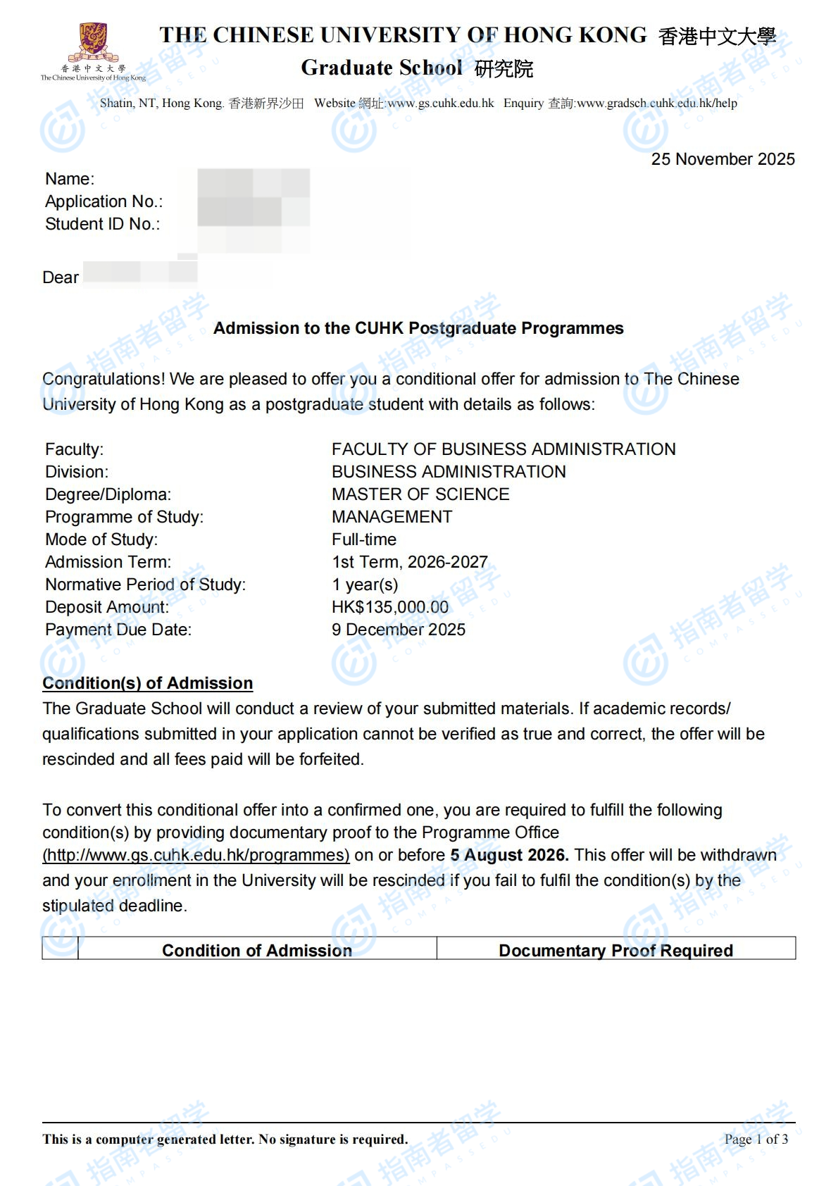 香港中文大学管理学理学硕士研究生offer一枚
