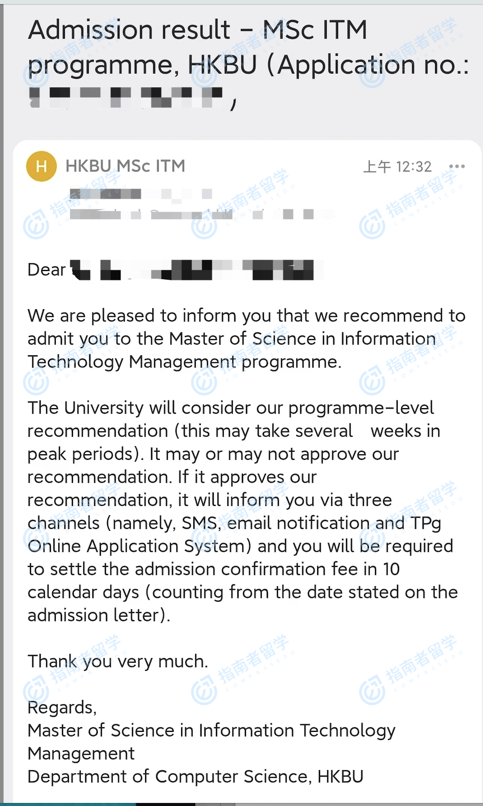 香港浸会大学资讯科技管理理学硕士研究生offer一枚
