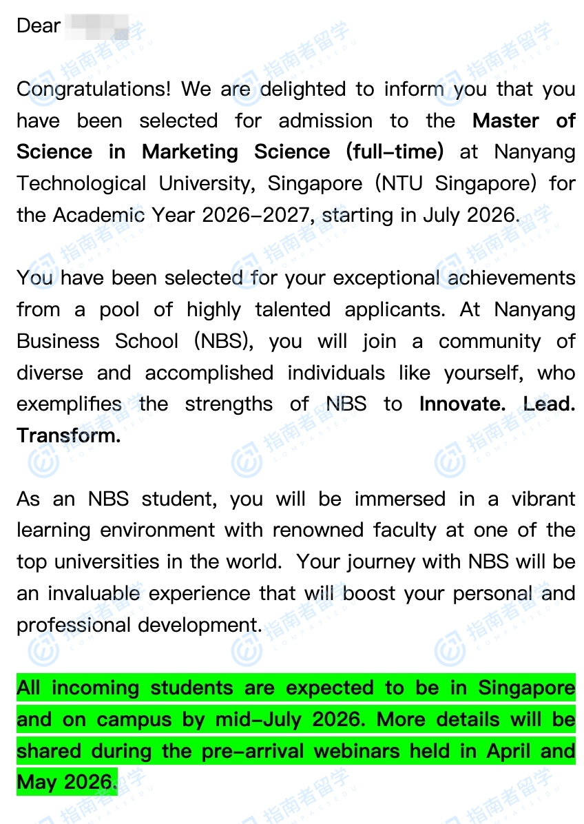 南洋理工大学市场营销学理学硕士研究生offer一枚