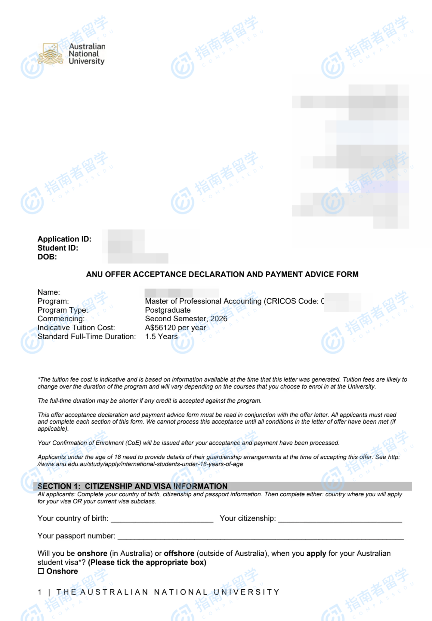 澳大利亚国立大学专业会计硕士研究生offer一枚