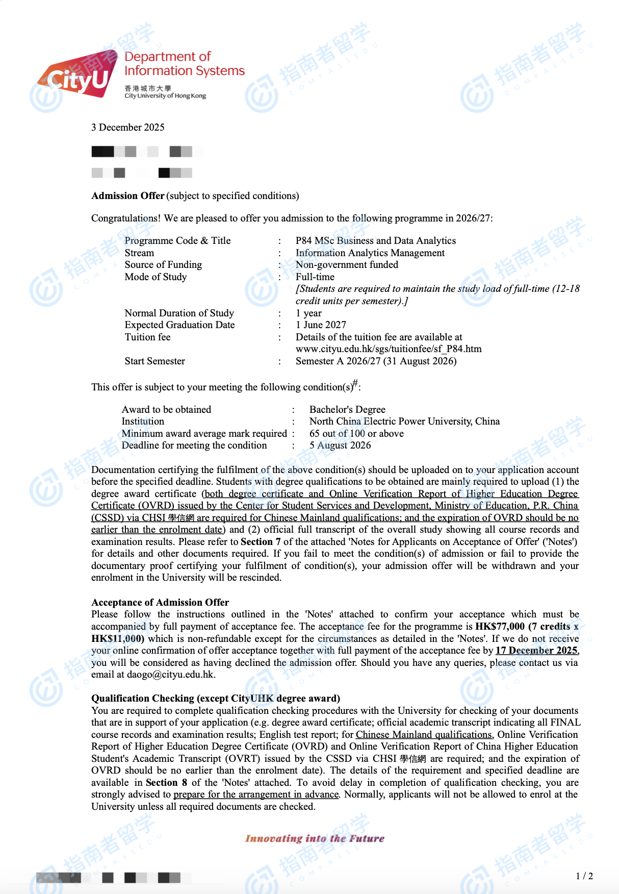 香港城市大学信息系统方向录取报告