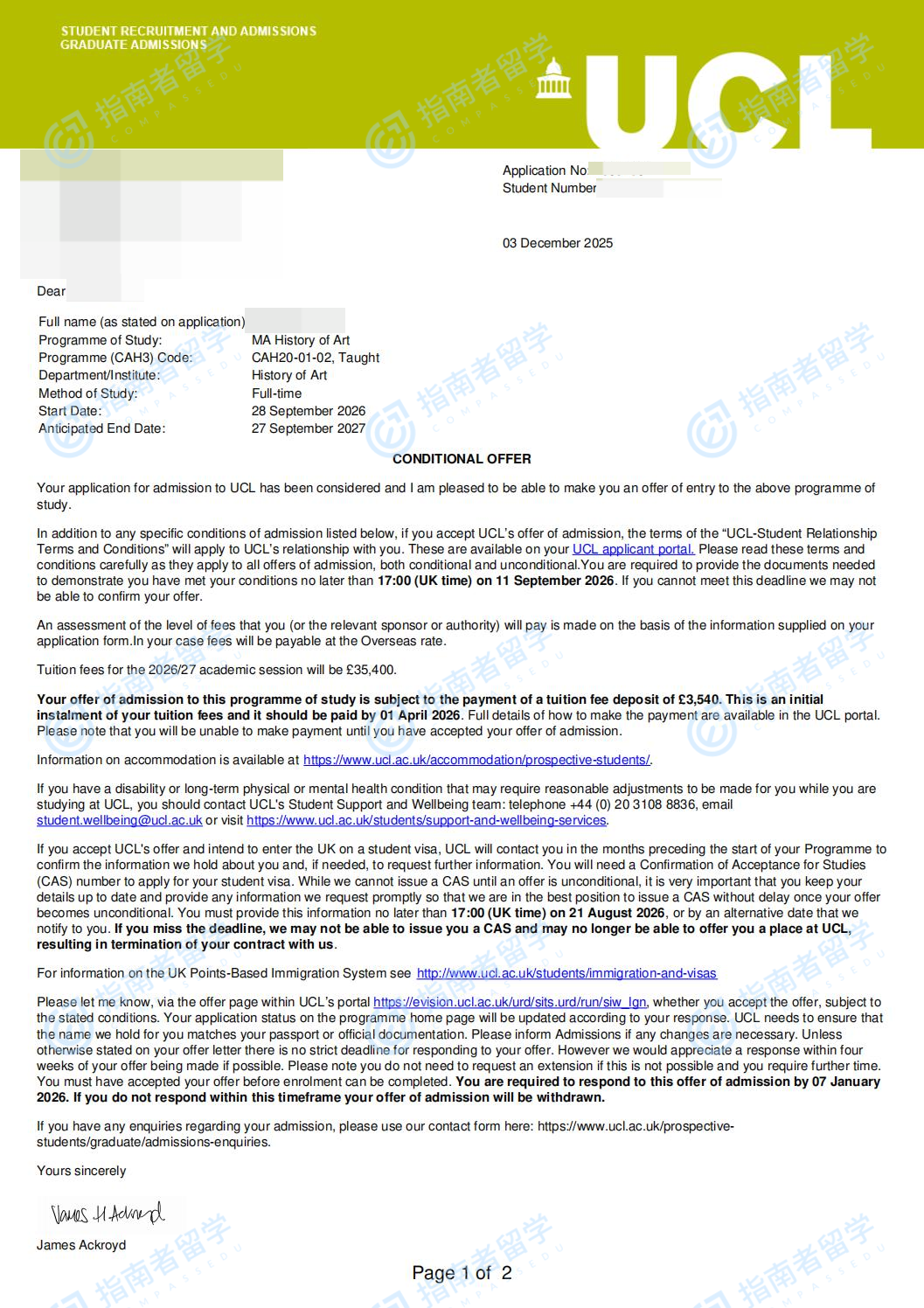 伦敦大学学院艺术史文学硕士研究生offer一枚