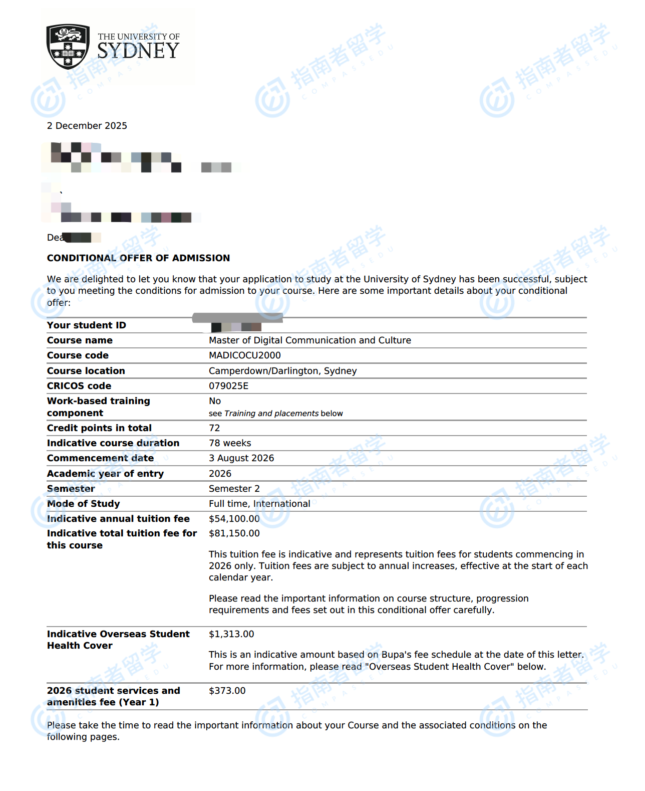悉尼大学数字传播与文化硕士研究生offer一枚