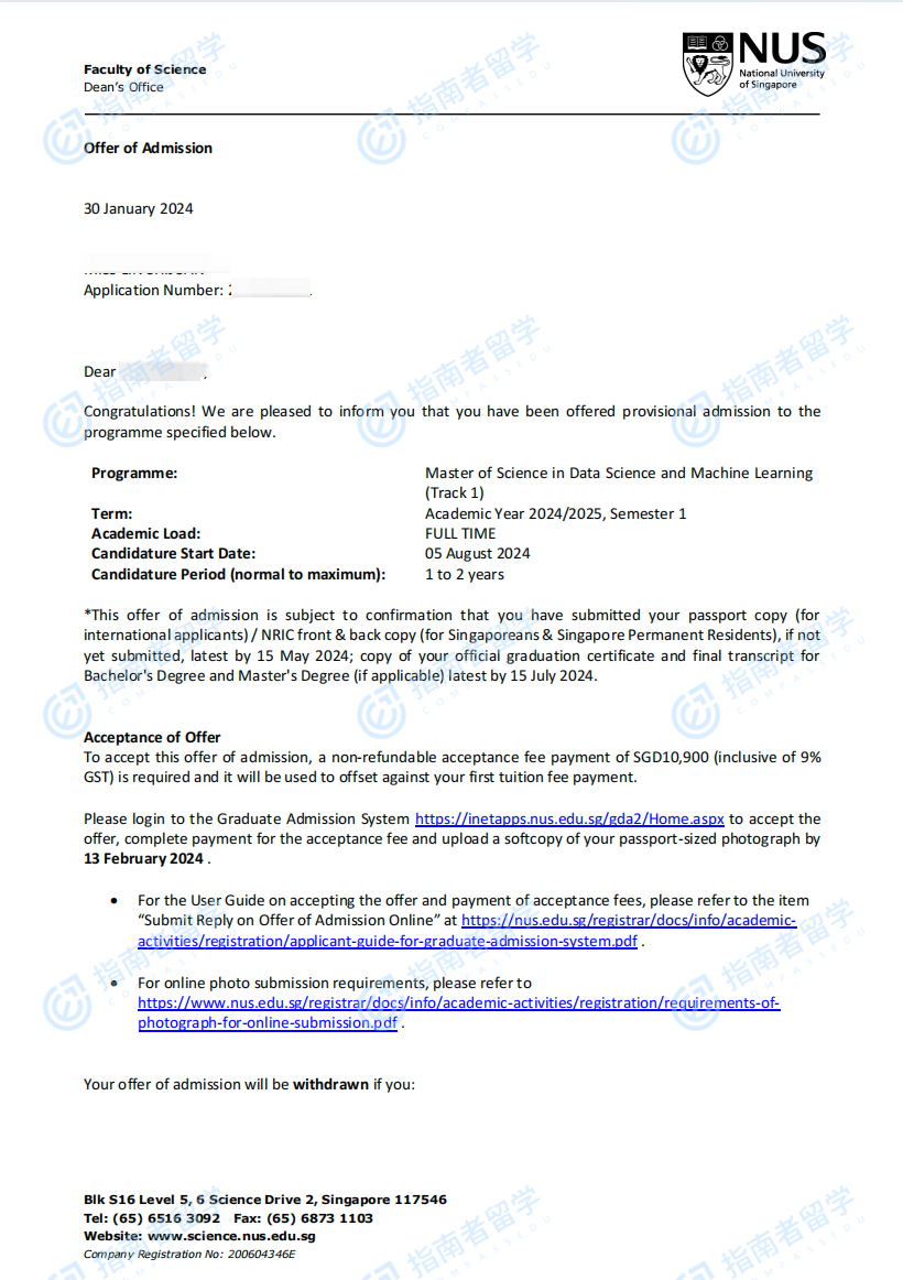 新加坡国立大学机器人学理学硕士研究生offer一枚