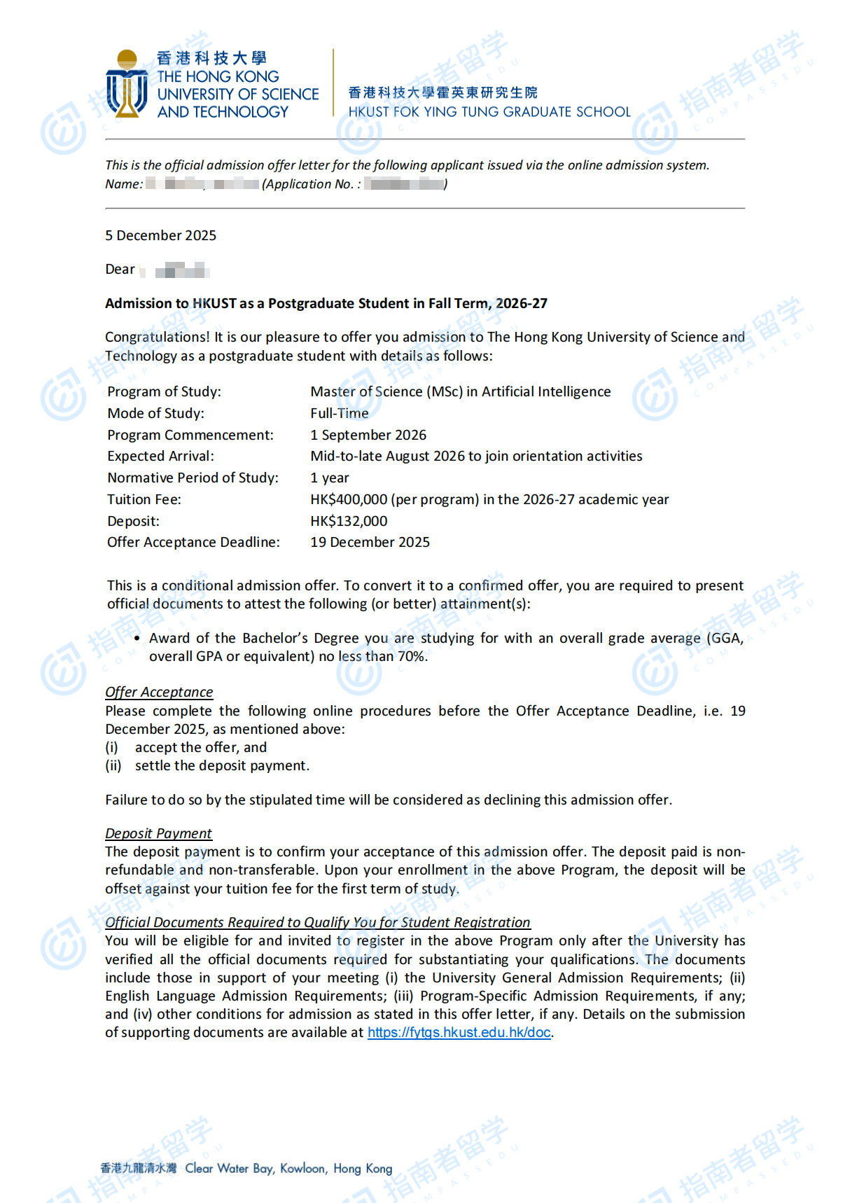 香港科技大学人工智能理学硕士研究生offer一枚