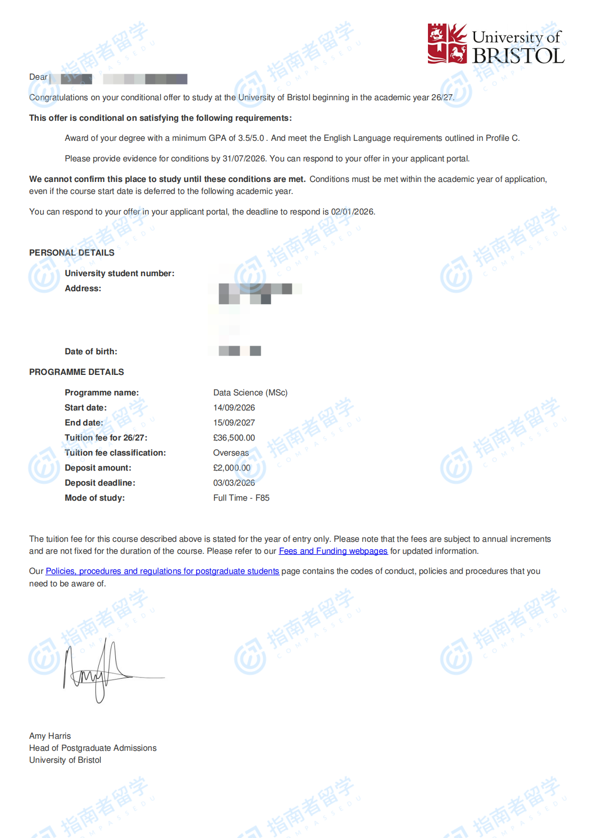 布里斯托大学数据科学理学硕士研究生offer一枚
