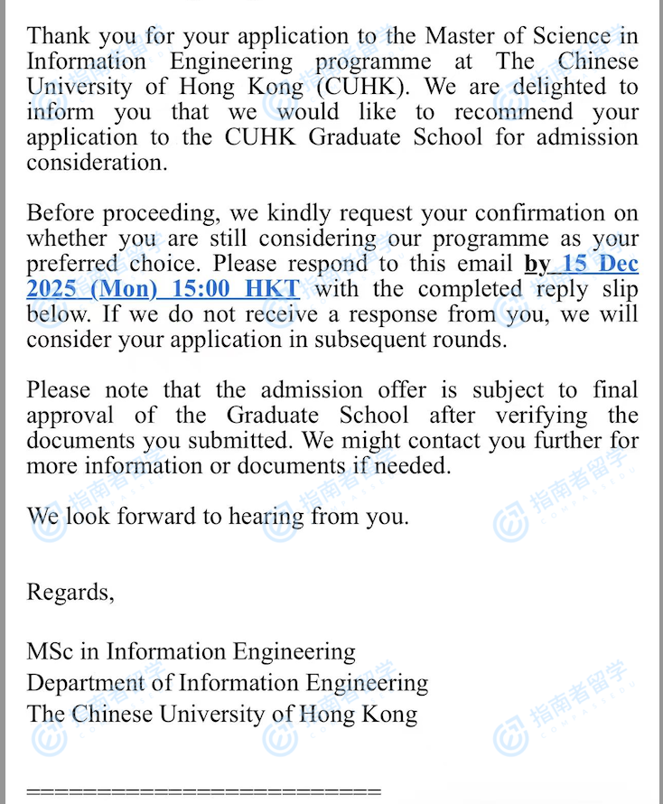<p> 香港中文大学信息工程硕士学位课程旨在通过为学生提供全面的研究生课程,以期将他们培养成为信息及通讯技术方面的领军人物。学生在毕业后有望实现以下目标:在设计、开发、部署或使用信息系统、网络和服务的行业和组织的工程和专业岗位上表现出色;在信息工程对商业、工业和社会的影响方面形成全球视野,并能够为跨学科的工程项目做出贡献或领导;通过专业学习和终身学习,继续他们的个人发展,有些学生将在世界各地的研究生院继续学习并取得优异成绩。 </p>