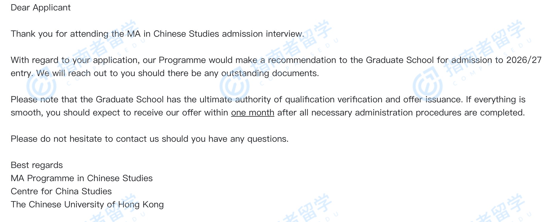 香港中文大学中国研究文学硕士(中国艺术与文化)研究生offer一枚