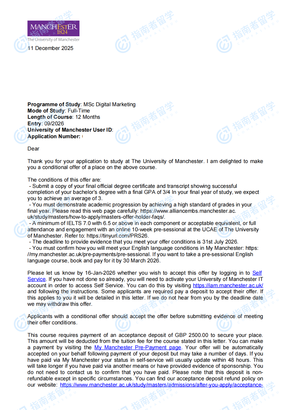 曼彻斯特大学数字营销理学硕士研究生offer一枚