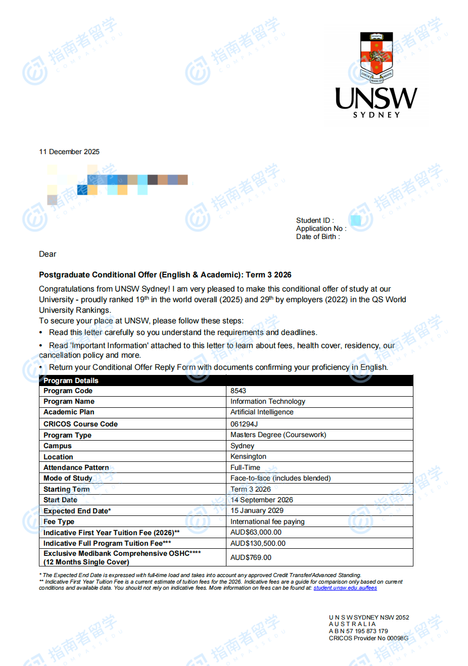新南威尔士大学信息技术硕士研究生offer一枚