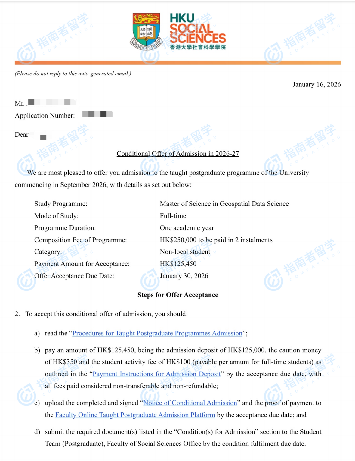 香港大学地理空间数据科学理学硕士研究生offer一枚