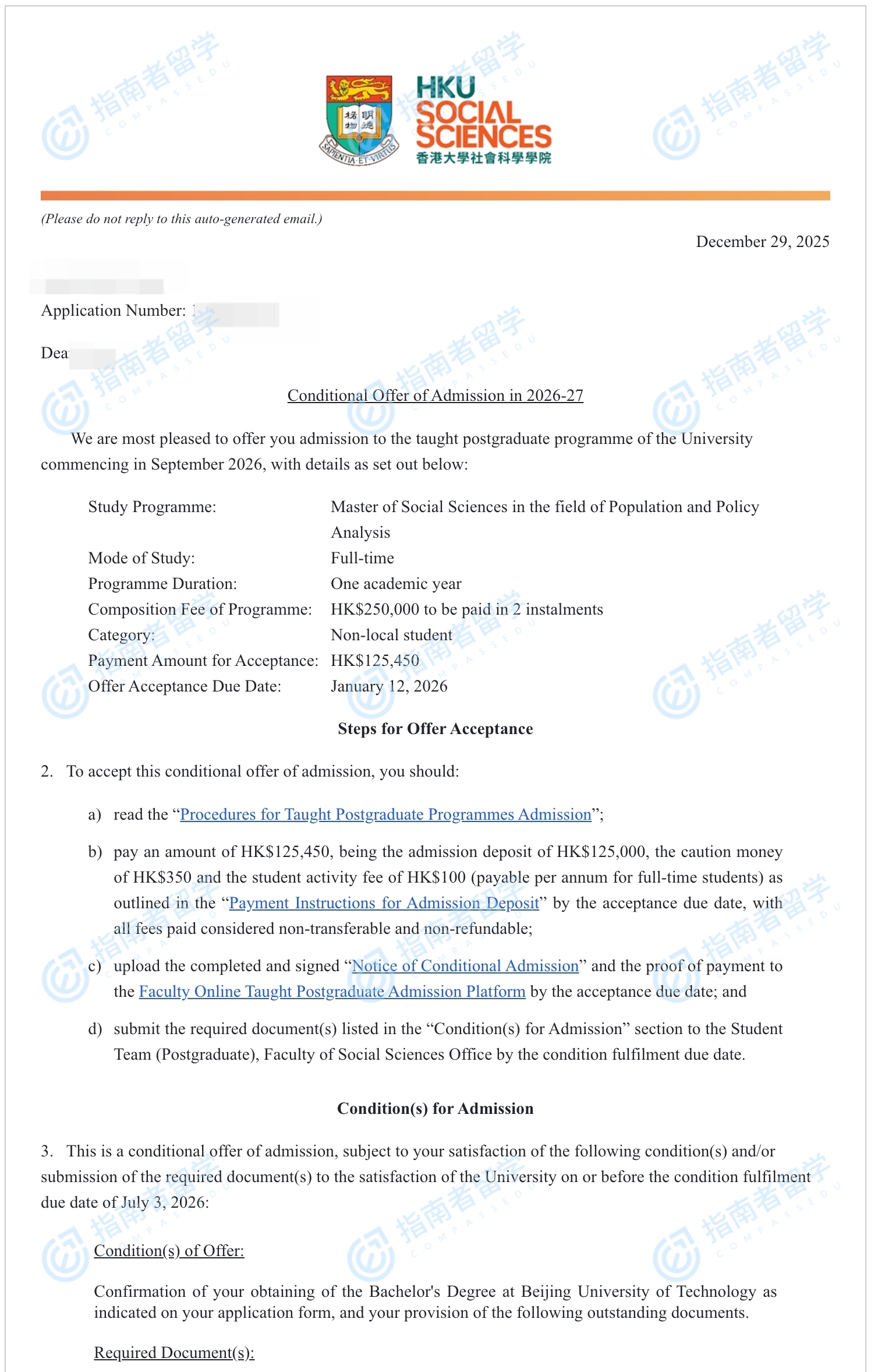 香港大学人口与政策分析社会科学硕士研究生offer一枚