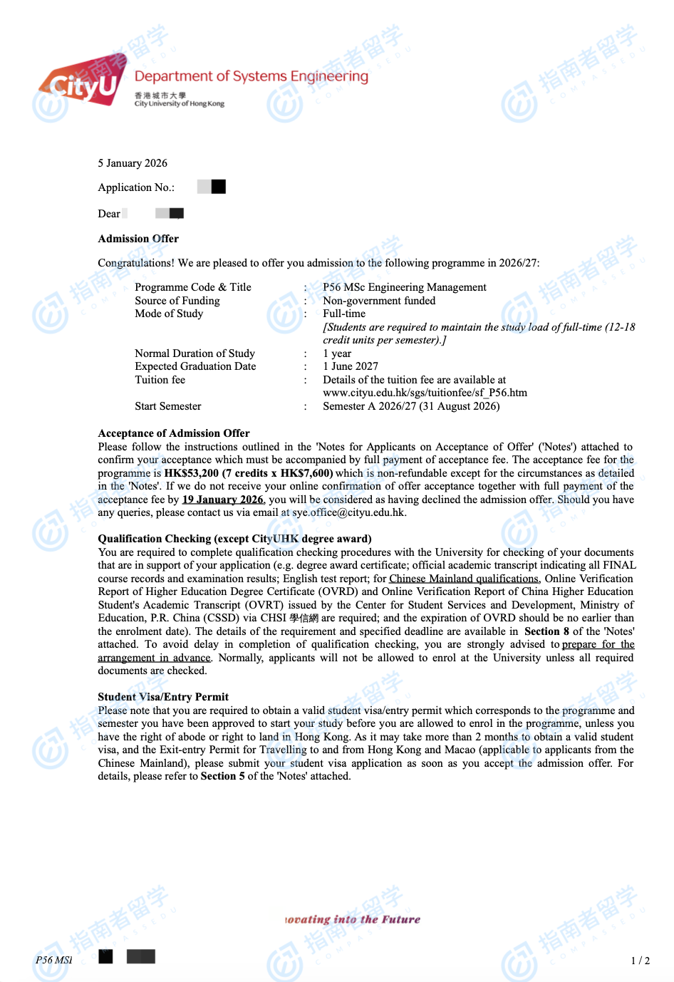香港城市大学工程管理学理学硕士研究生offer一枚