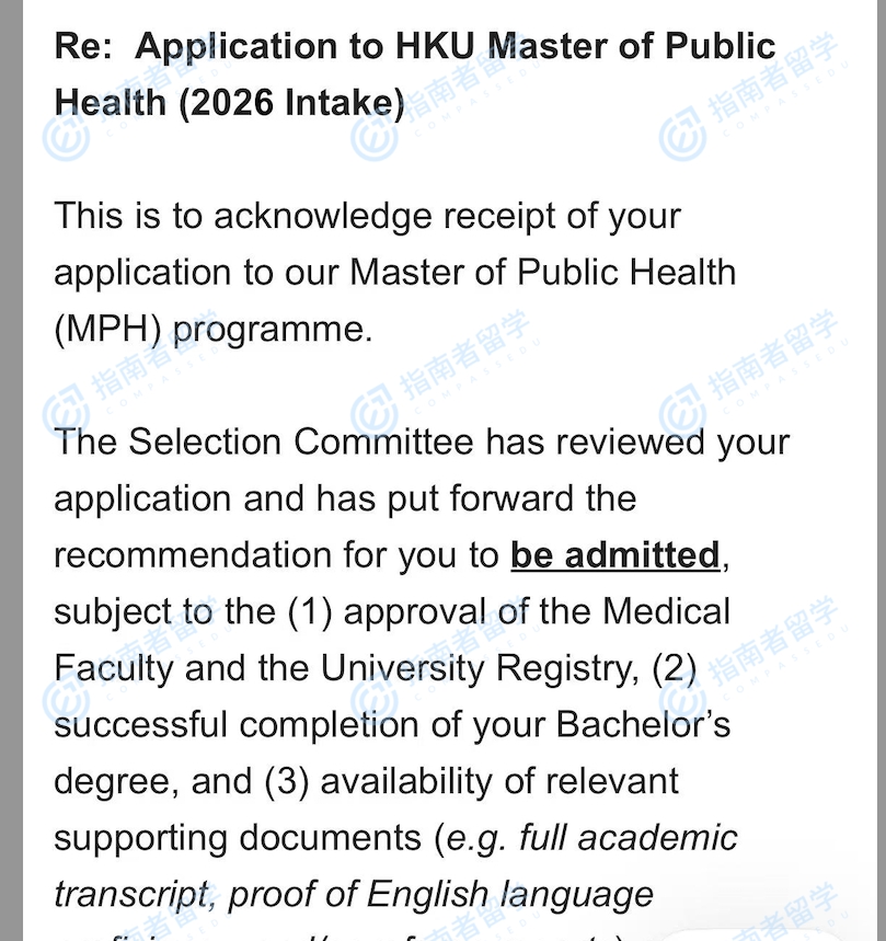 香港大学公共卫生硕士(卫生经济学、政策与管理)研究生offer一枚