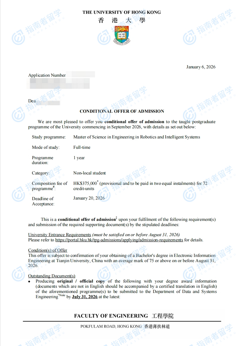 香港大学机器人与智能系统(工程)理学硕士研究生offer一枚
