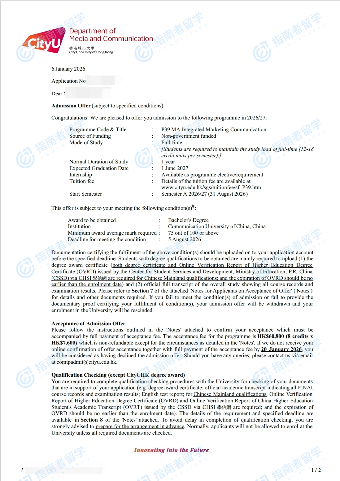 香港城市大学整合营销传播文学硕士研究生offer一枚