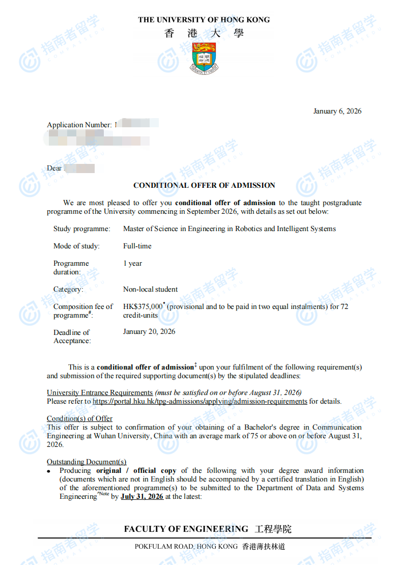 香港大学机器人与智能系统(工程)理学硕士研究生offer一枚